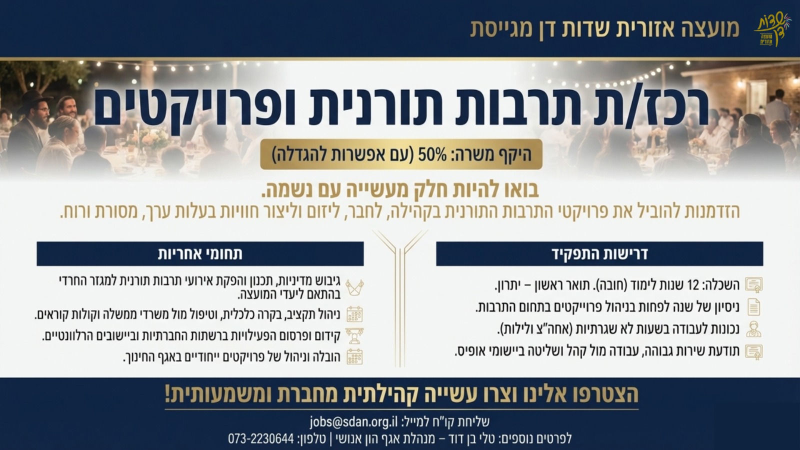 הזדמנויות תעסוקה חדשות במועצה אזורית שדות דן!