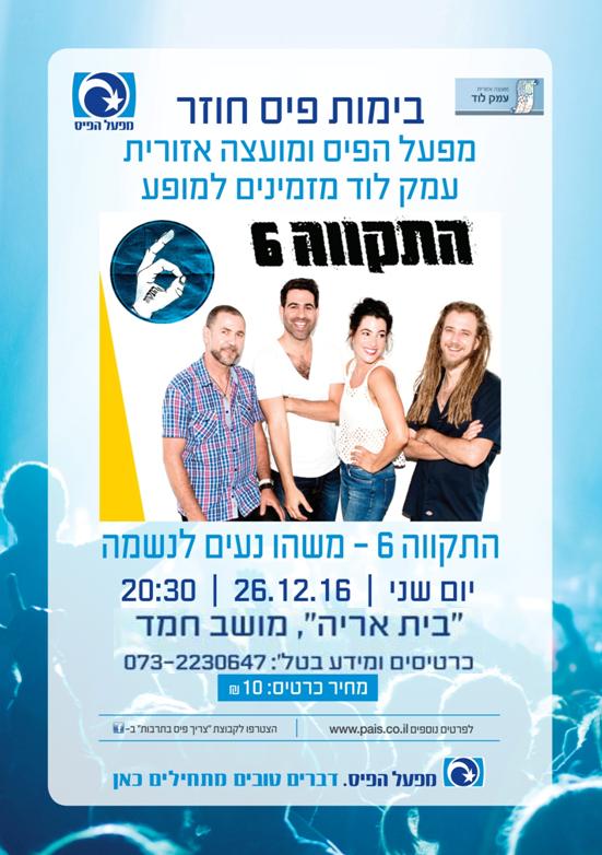 גם השנה המועצה האזורית עמק לוד עורכת מופע חנוכה לבני הנוער במועצה. השנה- משהו נעים לנשמה, התקווה 6 באים לשמח את בני הנוער. נתראה שם.
