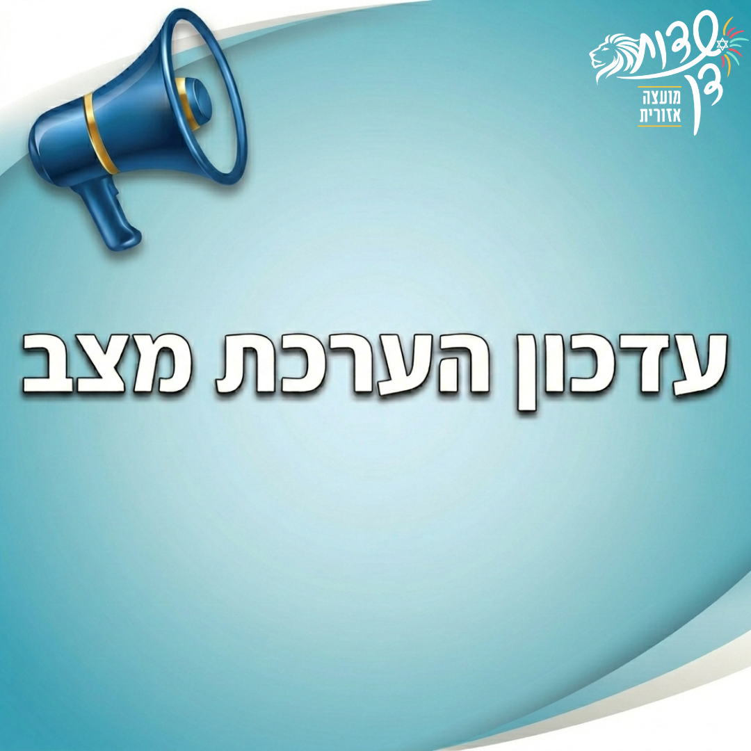 המועצה האזורית שדות דן ממשיכה לפעול במתכונת חירום מוגברת כדי להבטיח את שלומכם וביטחונכם. אנו קשובים לאתגרים שמעמידה המציאות הביטחונית המתמשכת בפני השגרה ביישובים, ומבקשים להודות לכם על החוסן, הסבלנות וההישמעות להנחיות מצילות החיים.