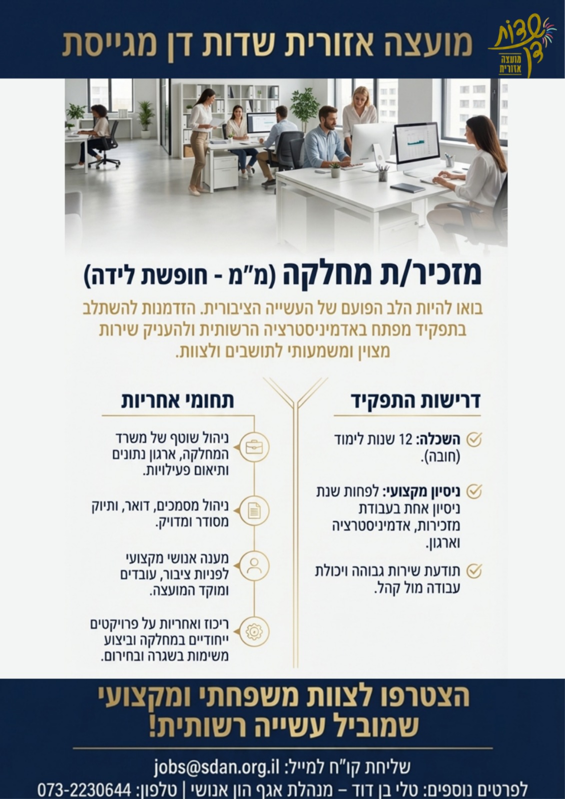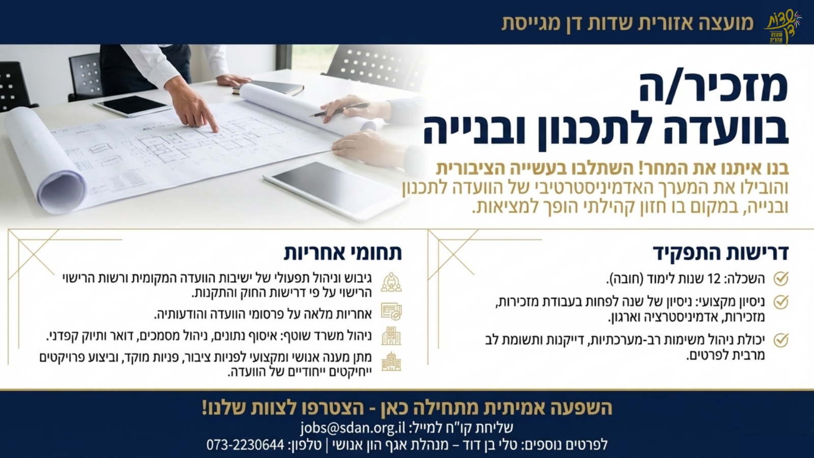 הזדמנויות תעסוקה חדשות במועצה אזורית שדות דן!